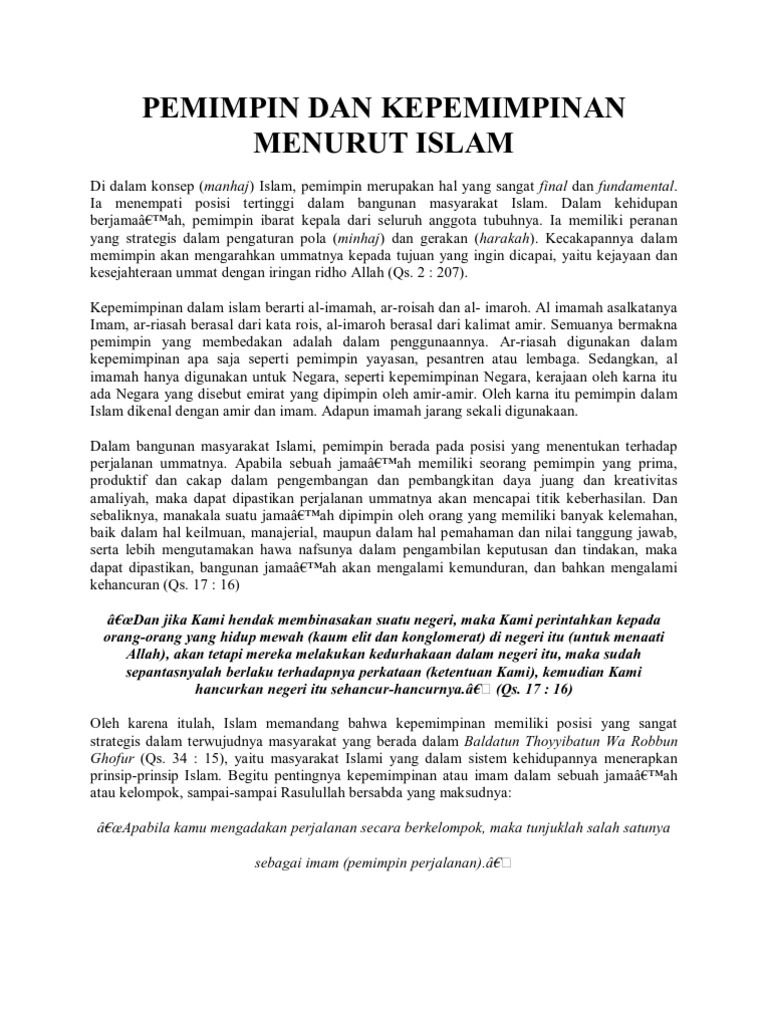 | Baca: Pemim Dan Kepemiman Menurut Islam Pdf |